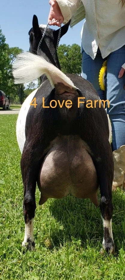 Magpie has truly made an enormous impact in our herd. She continues to excel! She earned 2 Reserve Champion ribbons at the TSDGA show in June 2025. She is maturing beautifully and is set to earn her milk star and participated in linear appraisal this year. She earned a VEEE 91 score as a 3F 4 year old and we couldn’t be happier. Magpie earned an E in Rump!